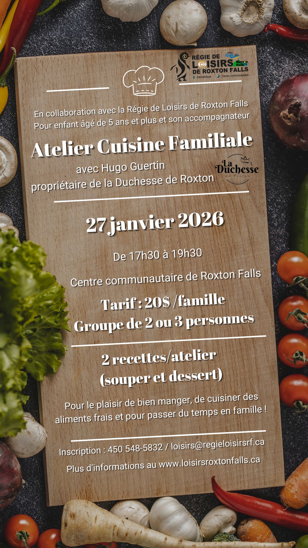 Atelier culinaire pour le plaisir de bien manger, de cuisiner des aliments frais et pour passer du temps en famille.