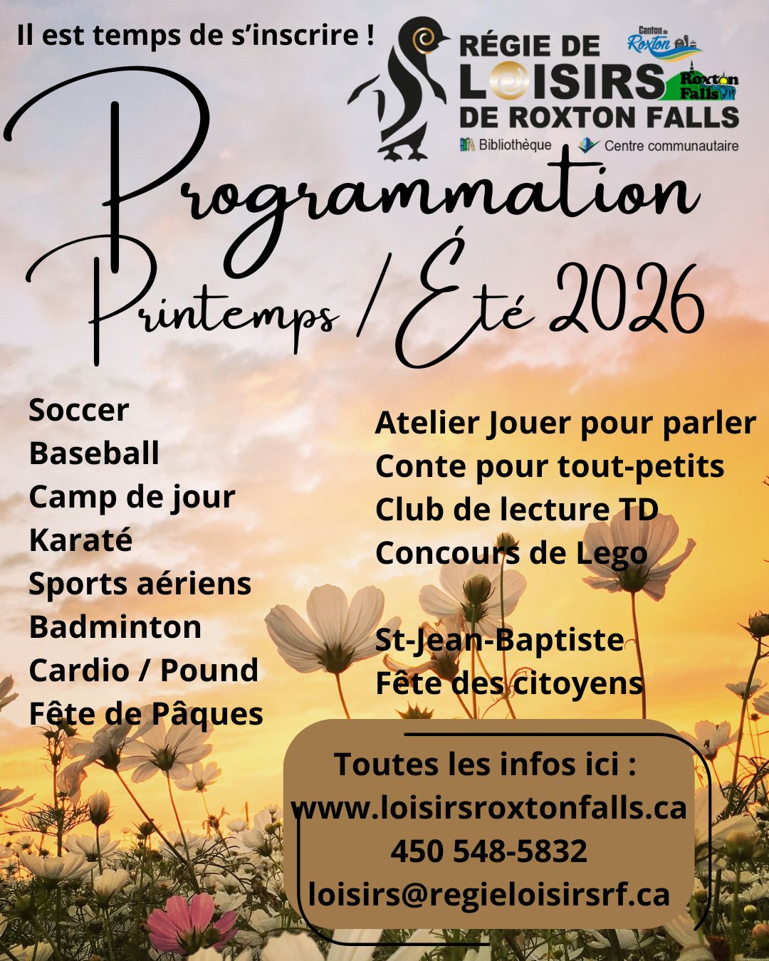 C’est le temps des inscriptions pour la session de printemps/été 2026.