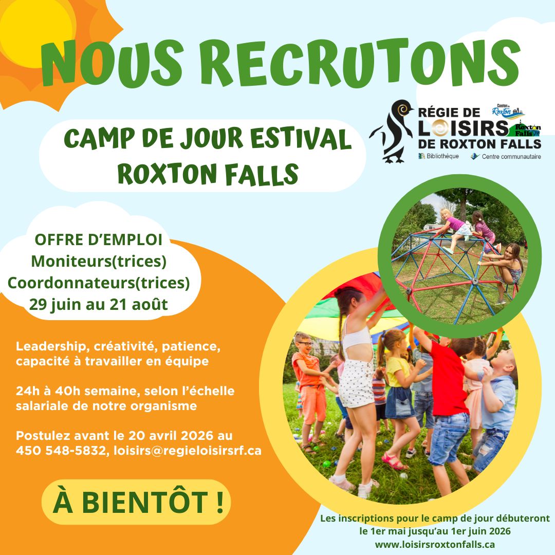 Pour faire partie de l’équipe de feu du camp de jour estival de Roxton Falls !